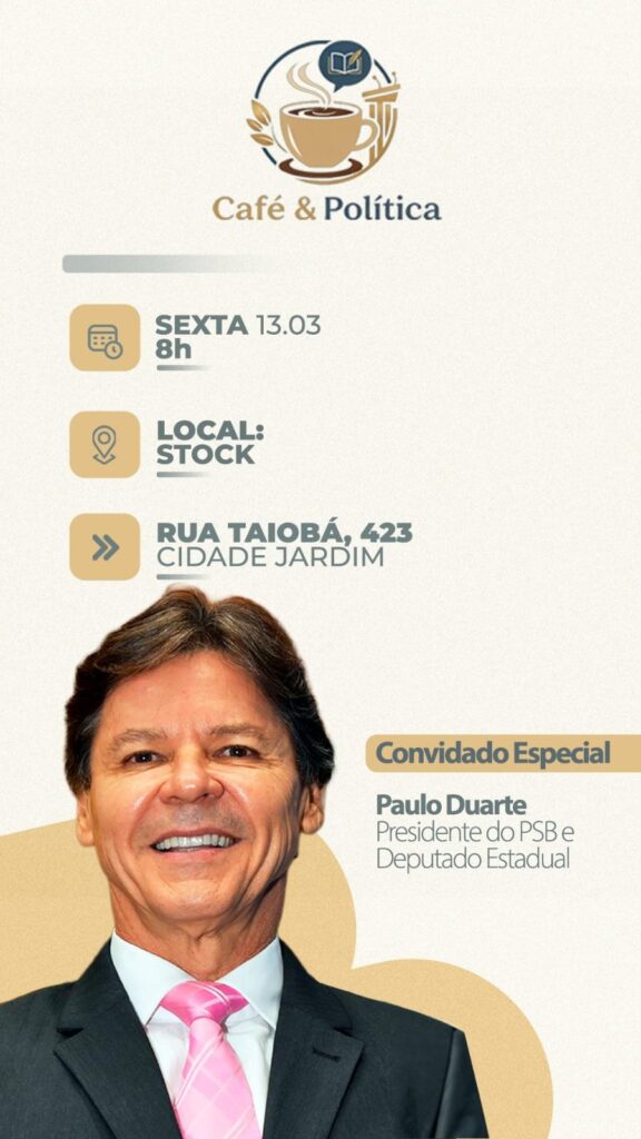 O deputado estadual Paulo Duarte será o convidado especial do Café & Política desta sexta-feira, dia 13, encontro que reúne lideranças políticas, empresários, jornalistas e formadores de opinião na tradicional Padaria Stock, em Campo Grande.