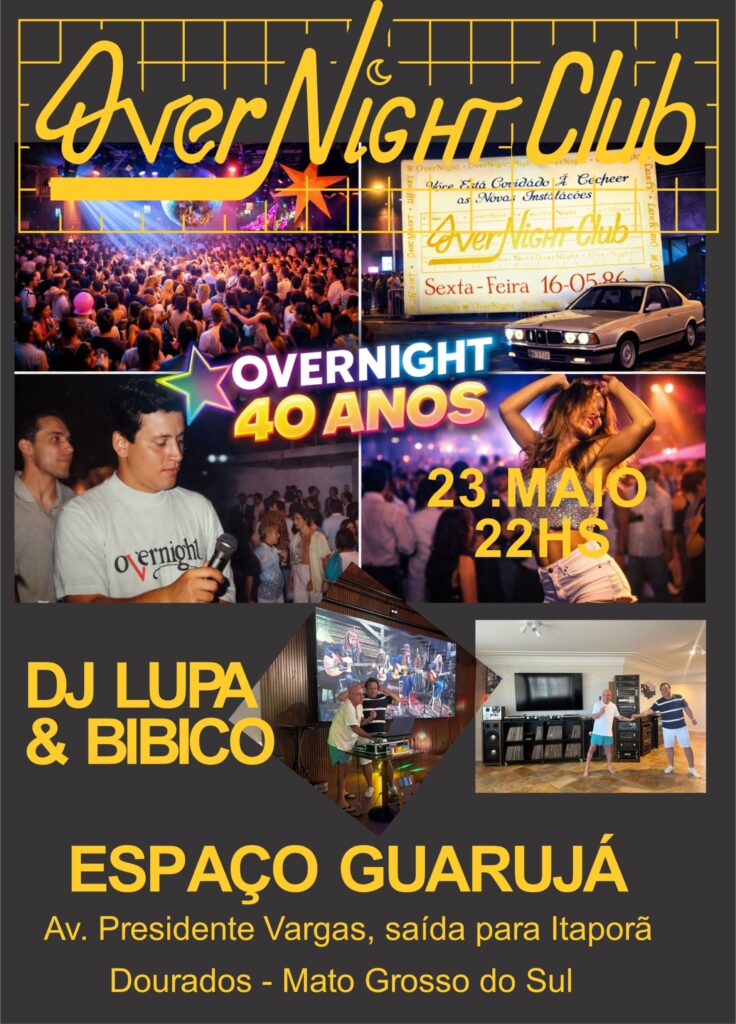 Dourados se prepara para viver uma verdadeira viagem no tempo com a celebração de uma das casas noturnas mais emblemáticas de sua história. A boate Overnight, que marcou gerações nos anos 80, será homenageada em um grande evento que promete reunir música, nostalgia e reencontros inesquecíveis.